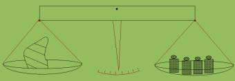 In Abb.2 ist eine Waage dargestellte, mit der normalerweise Massenvergleiche durchgeführt werden. Der Massevergleich mit einer Waage ist möglich, weil zwei Körper gleicher Masse sich in ihrer Wirkung auf einen Hebel nicht unterscheiden.