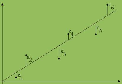 Die Variablen t und m in der Geradengleichung y = m· x + t werden so bestimmt , dass die Summe aus den Quadraten der Abweichungen ε1, ε2 ….. der Messpunkte minimal ist (siehe Abb. 2).