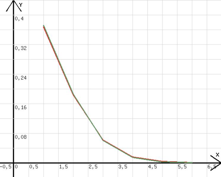 m=30; p=0,3; n =20; x=x+0,01; k=int(x); u=k; v=m!/(k!*(m-k)!)*p^k*(1-p)^(m-k); y= 1/wrz(2*p*(1-p)*pi*m)*exp(-1/(2*p*(1-p)*m)*(x-p*m)^2); l=x