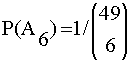 P(A6) = 6! · 43! / 49! =1/13983816 » 1/ 14000000