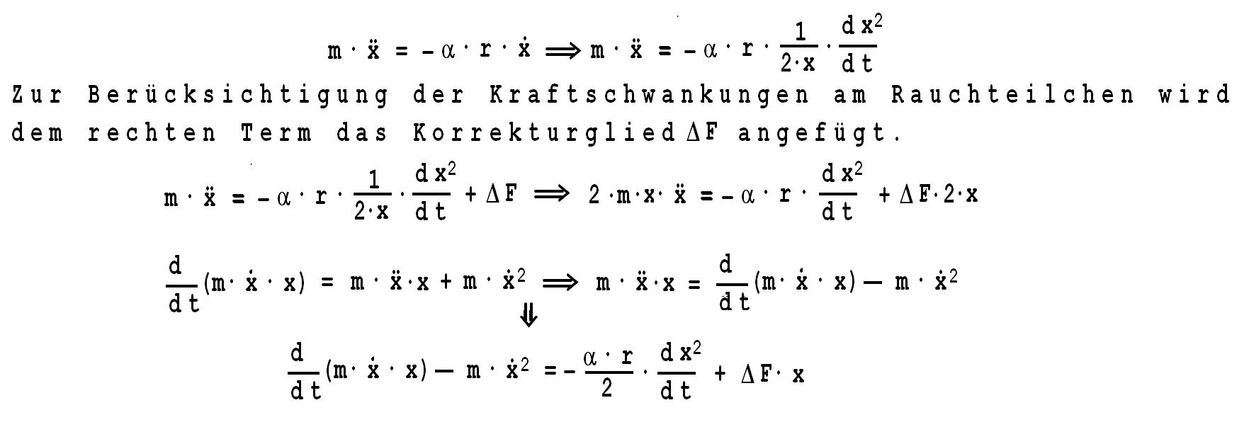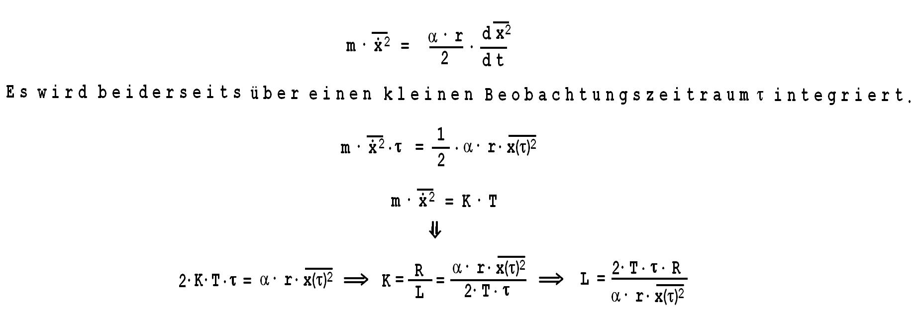 Man stelle sich viele gleiche Rauchteilchen mit dem Radius r und der jeweils die zugehörenden Gleichung vor. Die Mittelwerte der linken und rechten Terme innerhalb dieser Gleichungen werden durch die quadratischen Glieder dieser Terme bestimmt. Die Mittelwerte aus den anderen Teilen, die zwischen positiven und negativen Werten hin und her schwanken, können gleich 0 gesetzt werden.