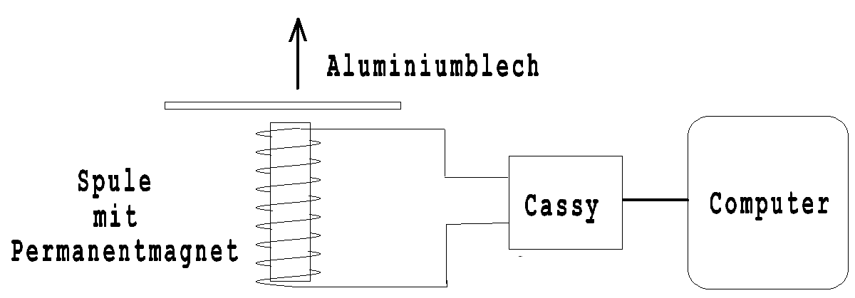 Anmerkung: Da der Autor als Pensionär keinen Zugang zu einer Physiksammlung einer Schule hat, musste er, abgesehen von einem Pocket-Cassy, das Experiment mit selbst angefertigten Dingen realisieren. Für die problemlose Durchführung sprechen die von ihm eingesetzten, in der Abb.3 dargestellten Teile, ein Aluminiumblech, ein Magnet und eine Spule.