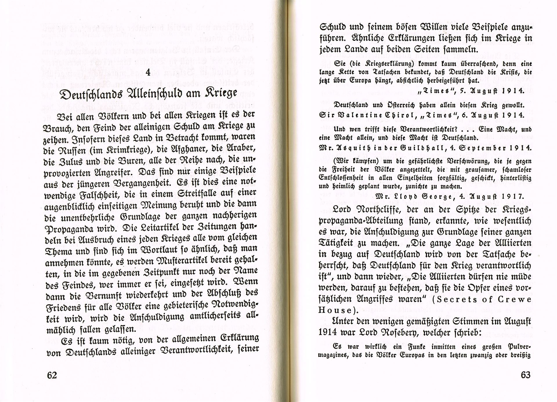 Seite 62 und Seite 63 : Deutschlands Alleinschuld am Krieg