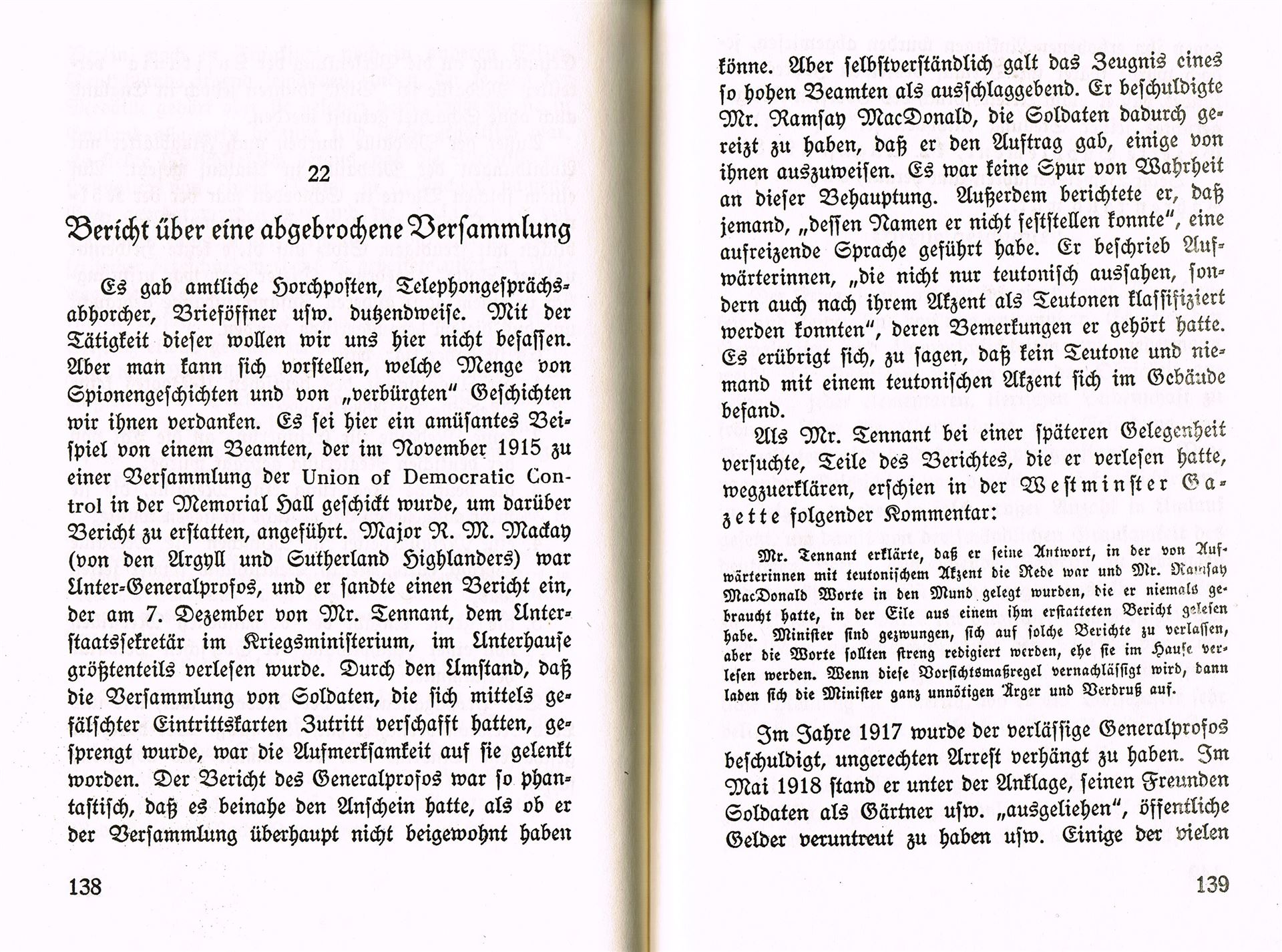 Seite 138 und Seite 139 : Bericht über eine abgebrochene Versammlung