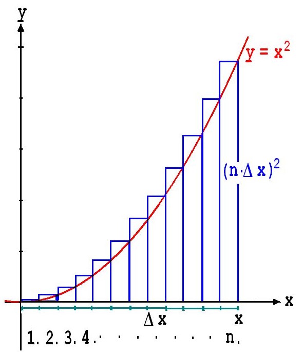 S = Δx· (1·Δx)2 + Δx· (2·Δx )2 + Δx· (3·Δx )2.........+ Δx· (n·Δx )2