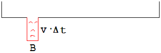 Die kinetische Energie des Wassers infolge der Sinkgeschwindigkeit ist vernachlässigbar klein. Aus dem Wasservolumen V und dem Querschnitt A der Badewanne kann der Wasserstand x errechnet werden. Nach einem kleinen Zeitabschnitt Δt = h hat das Volumen der Wassers um v · Δt ·B abgenommen (siehe Abb. 2).
