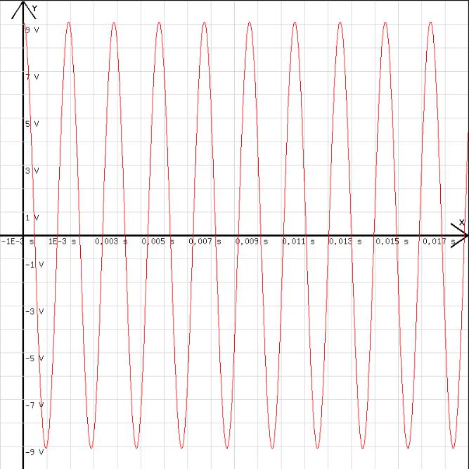 Daraus folgt für die elektrische Schwingung: T = 2· π·√(L/(1/C) ) = T = 2· π·√(L·C) . Nach dieser Gleichung gilt für die Schwingungszeit T der hier dargestellten Schwingung: