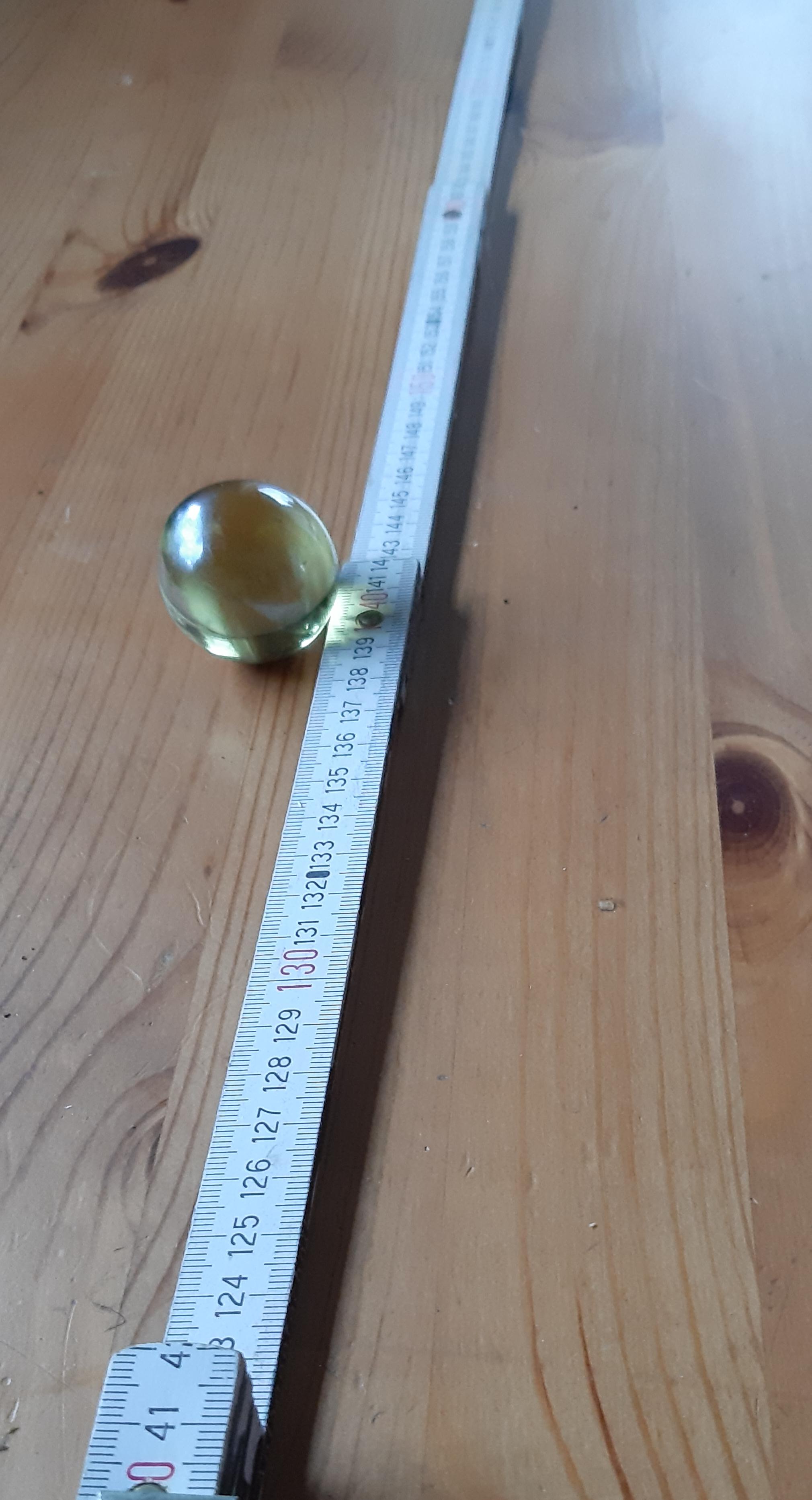 0,392s ist der Mittelwert aus den Differenzen zwischen den Startzeiten und den Zeiten des Aufschlags (Fallhöhe h = 75 cm ) . Aus diesen Werten gewinnt man nach 2·h/t2 = g für g den Wert 976 cm/s2.