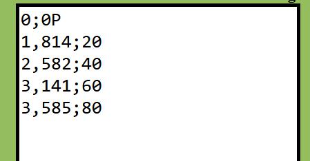 Ein Tischbein wird mit einem Brett unterlegt, so dass der Tisch schwach geneigt ist (hier ≈ 1°). Auf diesem Tisch lässt man eine Kugel an einem Zollstock entlang abwärts rollen (siehe Abb.1). Im Fenster des Programms „Zeiterfassung“ wird der Knopf „Zeit“ angeklickt, wenn die Kugel startet und dann, wenn sie s = 20 cm, 40 cm, 60 cm und 80 cm zurückgelegt hat. So entsteht eine Tabelle, wie sie in der Abb. 2 zu sehen ist. Mit „Kopieren/Einfügen“ werden diese Werte in das Tabellenfenster des Grafikprogramms „Sim.php“ übertragen. Dort wird die Tabelle durch die Längen der zurückgelegten Strecken ergänzt und an die erste Zeile wird ein P angehängt, damit die Wertepaare in einem Koordinatensystem durch Punkte dargestellt werden (siehe Abb.3). In das Programmfenster wird eine dazu passende Funktion eingetragen (hier: 6,1*x^2). Wird unter dem Programmfenster „START“ angeklickt, dann erscheint neben den Punkten zu den Wertepaaren auch noch der Funktionsgraph (siehe Abb. 4). Aus s = 6,1· x2 ( x = Zeit t in Sekunden) folgt: s/ x2 = Konstante = (hier : 6,1 cm/s2).