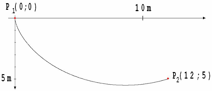Auf welcher Bahn rollt eine von einem Punkt P1 zu einem seitwärts darunter liegenden Punkt P2 am schnellsten ?