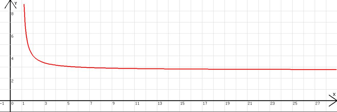 Wenn man y= [a/(a-1)] a in Abhängigkeit von x=a grafisch darstellt (siehe Abb. 3), dann ist erkennbar, dass y erwartungsgemäß mit zunehmendem x= a gegen einen Wert bei 2,73 strebt.