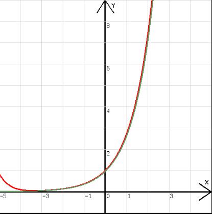 Der Polynomgraph passt gut auf den Graphen von y = ex !