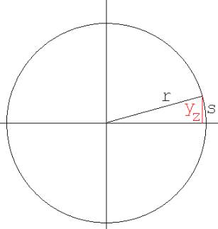 Wie in der Abb. 2 zu erkennen ist, weicht das Bogenmaß s/r=x bei sehr kleinen Winkeln nur wenig von yz/r , dem zugehörenden Sinus, ab. y = x ist demnach zur Beschreibung von y=sin(x) geeignet, wenn man den Winkel im Bogenmaß angibt und sich auf sehr kleine Winkel beschränkt (siehe Abb. 3).
